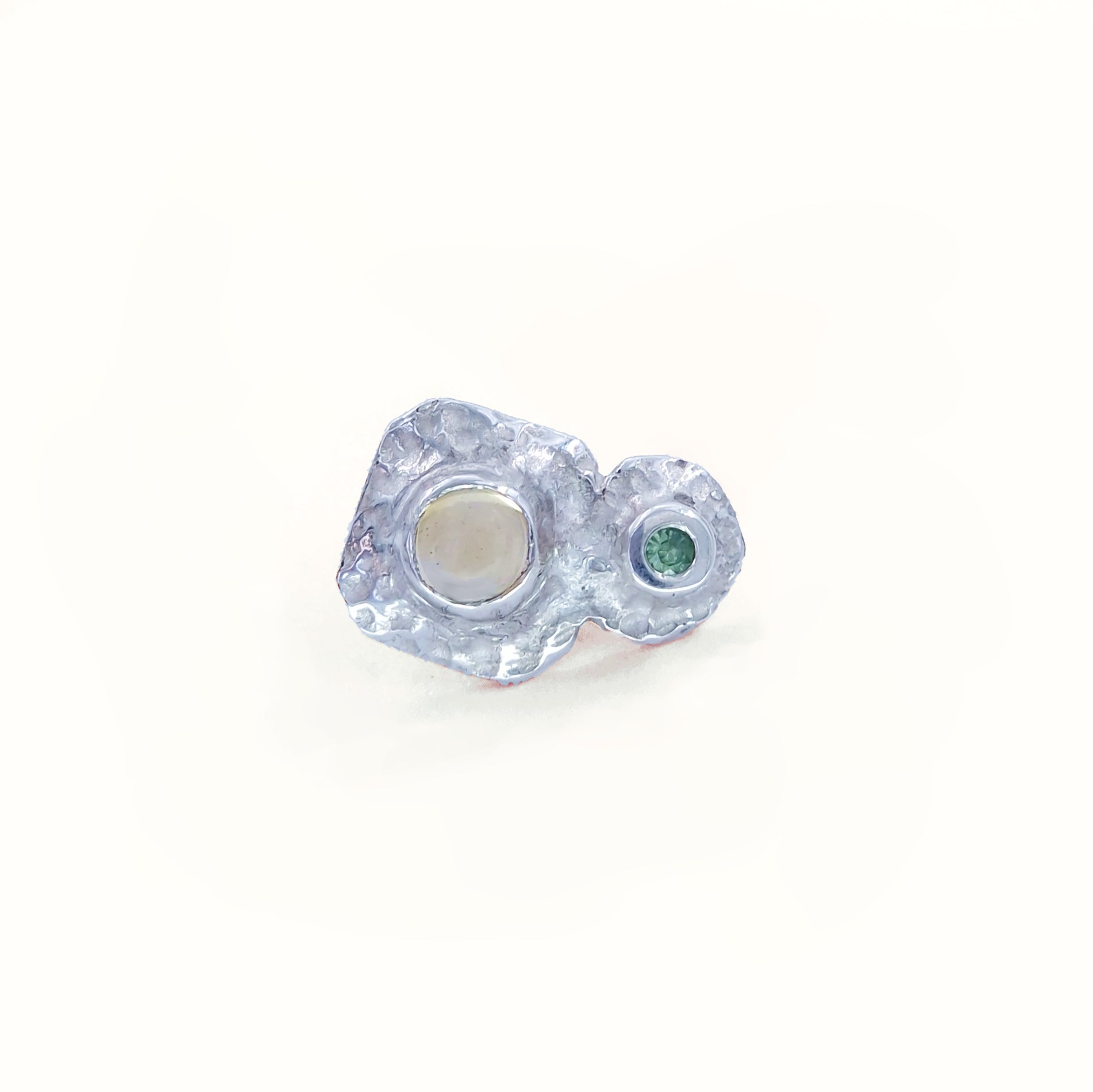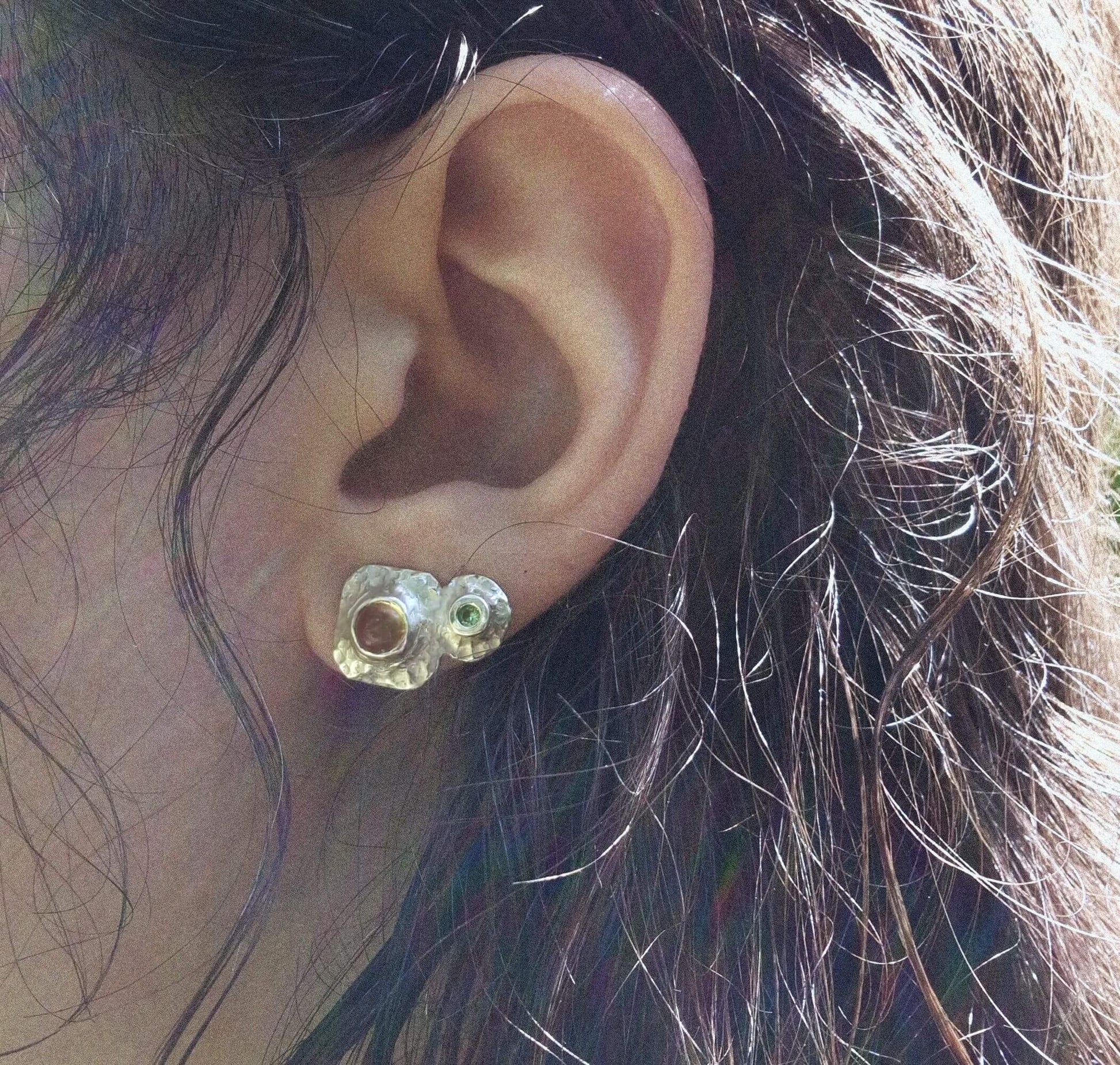 Boucle d'oreille solo, Rebrousse-Temps se pose sur votre lobe gauche pour l'habiller facétieusement. Inspirée des cabochons, l'une des rares taille de gemmes possibles dans l'antiquité avec les outils d'alors, Rebrousse-Temps est un rappel au piercing qui dès sa création a des allures de bijou érodé par le temps.
